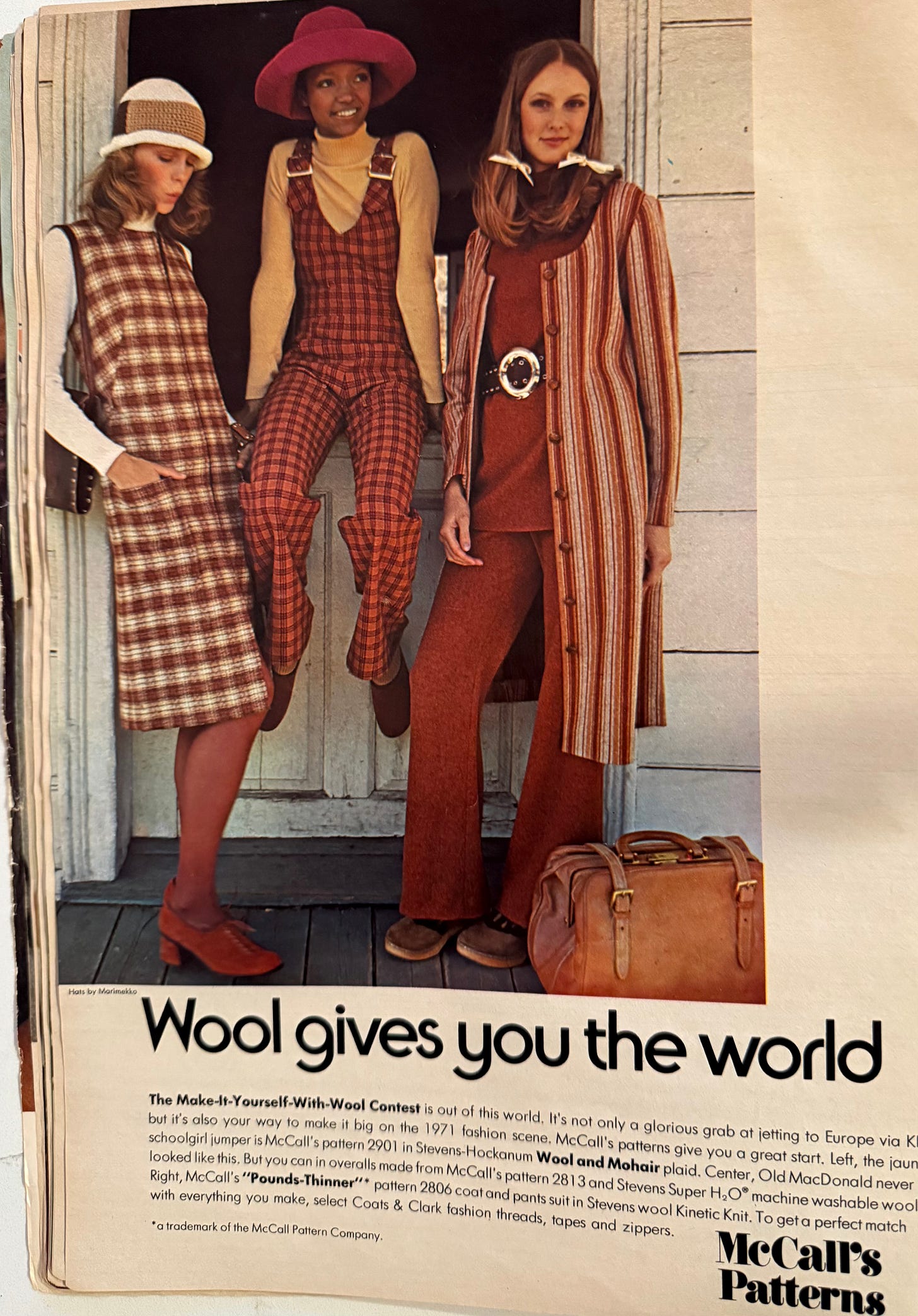 Home sewing was popular with teenage girls in 1971. Seventeen promoted the idea heavily, and that year’s issues are full of fabric, thread, and pattern ads.